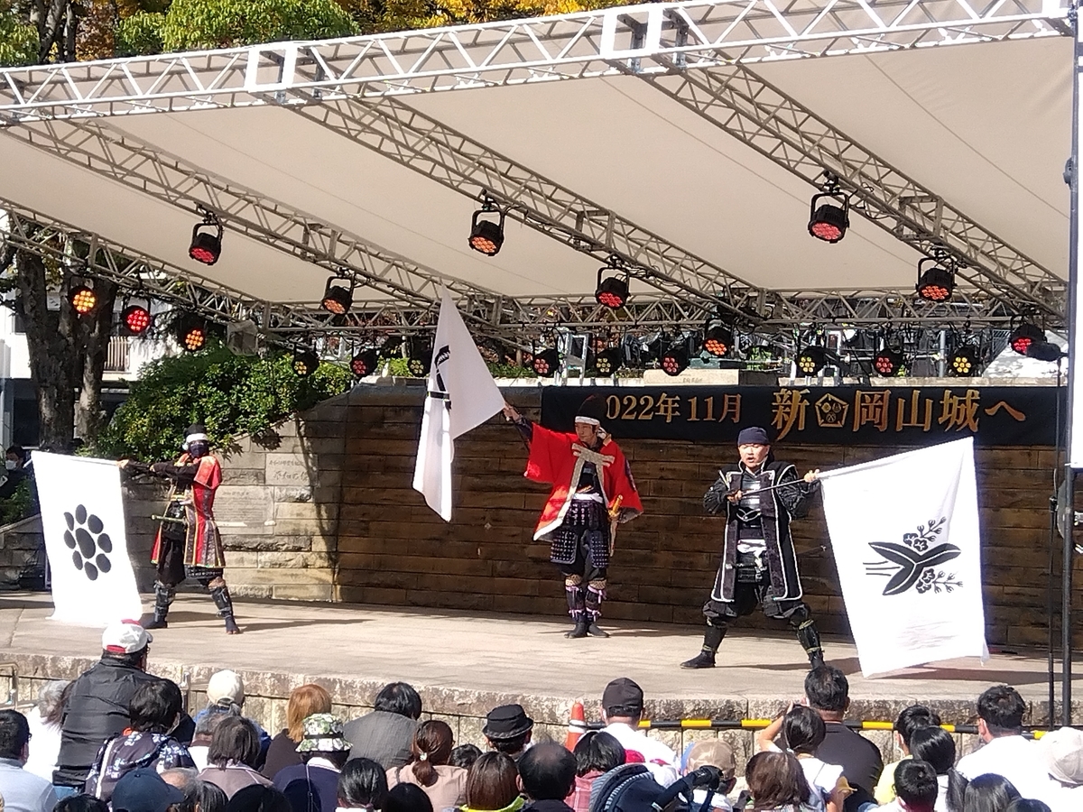 2022-11-04 岡山城リニューアルオープン きまぐれ日記 城めぐり・岡山県 昨日の祝日を利用して 岡山城リニューアルオープンイベントに行って来ました 当日は、名古屋武将隊や関ヶ原武将隊 地元岡山武将隊などの演目もありました 新しくなった岡山城天守もやっぱり綺麗!! ランキング参加中日本の城 ランキング参加中歴史